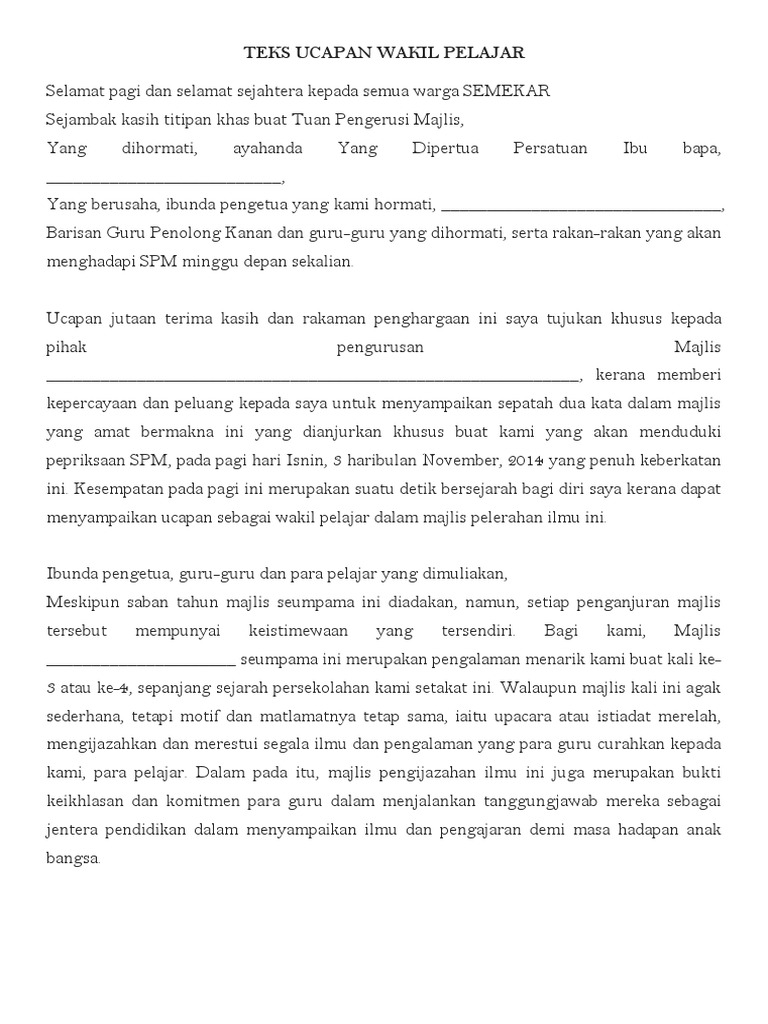 Teks Ucapan Wakil Pelajar Restu Ilmu Template from imgv2-2-f.scribdassets.com Doc teks ucapan wakil pelajar nurul izzah hazirah ii academia edu. Teks ucapan persaraan tn hj badaruddin hj dahlan. Majlis diteruskan lagi dengan mempersilakan. Terima kasihkepada saudari pengerusi majlis. Teks ucapan wakil pelajar sempena majlis mohon restu pmr. Teks pembawa acara pengajian, pernikahan, acara resmi, peringatan hut ri. Banyak antara kita yang ingin menyampaikan ucapan teri. Teks ucapan perasmian mesyuarat agung pibg.
