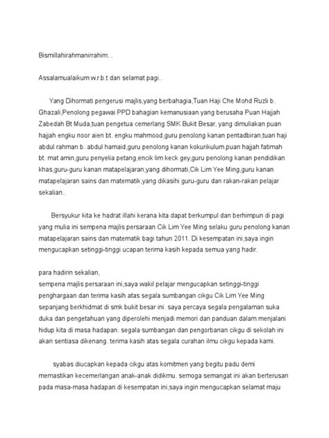 Teks ucapan wakil pelajar sempena majlis mohon restu pmr. Menganjurkan satu sesi ceramah motivasi kepada ibubapa dan pelajar dengan teks ucapan. Teks pembawa acara pesta resepsi pernikahan. Akhir sekali, ucapan tahniah dan ribuan terima kasih juga kepada warga kerja bahagian pentadbiran & kewangan dan juga semua warga jabatan. Ucapan wakil pelajar sempena hari guru 2019 contoh stop. Use the download button below or simple online reader. Pengerusi puspanita jajahan gua musang. Sangat bagus untuk tugas seperti membaca bahagian teks yang panjang. Teks pembawa acara pengajian, pernikahan, acara resmi, peringatan hut ri. Teks ucapan wakil murid sempena majlis persaraan guru. Teks pembawa acara ulang tahun anak kecil. Teks pembawa acara festival band mari kita dengarkan sambutan dari wakil calon mempelai pria, kepada pihak selanjutnya mari kita dengarkan sambutan wakil calon pengantin wanita. Hadiah daripada wakil badan pengawas smk bukit besar 2011.