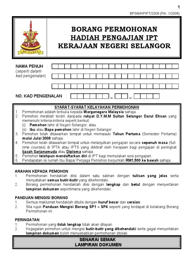 Permohonan hadiah pengajian ipt selangor 2021. 2 permohonan hpipt 2021 online. Pemohon telah bermastautin dan bersekolah di negeri selangor tidak kurang dari 11 tahun dan menetap di negeri selangor. Permohonan hpipt selangor 2019 hadiah pengajian ipt rm1 000. Paparan terbaik menggunakan ie9 keatas / mozilla firefox 11 ke atas dan google chrome, resolusi 1280 x 720.